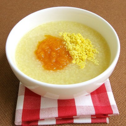 宝宝营养粥做法三、南瓜蛋黄小米粥