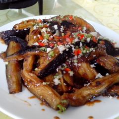 在东北菜里,酱扒茄子的家常做法也算是经典的素食菜谱了,融合了东北菜做法喜欢用大酱做菜的特点,虽然没有地三鲜菜那样在全国颇有名气,但是酱扒茄子的好吃程度却和地三鲜不分上下,用来佐饭,很好吃特别下饭,而且口感很好,有浓郁的酱香味、蒜香味十足。这道酱扒茄子的家常菜我吃过好多家的,但是至今另人念念不忘的惟独几年前在一个很不起眼的小餐馆里吃的味道,端上来后也是象所有的酱扒茄子一样整条的摆放在盘子里,唯一不同的是上面撒了一层碧绿的葱花,一下画龙点睛地让颜色很深的一盘菜有了亮色,吃到嘴里酱香、茄子香、葱香、蒜香即各有滋味,又浑然一体,非常好吃。所以以后在做酱扒茄子我都会在上面撒上绿葱花。茄子是比较吃油的菜,地三鲜、烧茄子、扒茄子等不放肉的茄子菜,只有经过油炸后才好吃,油少了不好吃,所以那些用水煮等五花八门的茄子省油做法,只能打着健康的旗号,味道肯定是不能和传统的油炸后再做的相提并论,所以做酱扒茄子我还是喜欢传统的做法。茄子做好了、但是油很大、这个菜是高脂肪、不喜欢吃这个菜的人可以做凉拌蒜茄子。但是我吃以后觉得比较香甜、特软滑。酱扒茄条的家常做法小窍门小火煎酱扒茄子、熬汤勤搅和,不能炖时间长。因为大酱里有淀粉、茄子上也有淀粉,所以最后不用水淀粉勾芡,汤汁也很浓稠;蒜一定要分两次放,特别是最后放的蒜末可谓是给这道菜起了画龙点睛的作用;绿葱花要最后盛入盘子中再撒上,既漂亮葱味又浓。酱扒茄条的家常做法1.将茄子洗净去皮,也可以带皮,我买的茄子外皮有点老;2.将茄子从中间纵向切开;3.将茄子打上网格状花刀,深度为茄子1/2;4.将打好花刀的茄子用手拍上薄薄一层干淀粉;5.将油锅烧热,用一根筷子放进去,筷子周围是密集的泡泡就可以了,然后酱茄子放入炸成金黄色捞出;6.将葱切成葱花,葱白和葱叶分开放置;蒜瓣先用刀拍一下,再切成蒜末,生姜切末;酱油、醋(吃不出酸味,提鲜的作用)、白糖、花椒粉兑成调料汁;7.将炒锅烧热,放少许油,改小火放入大酱(大酱就可以,做这道菜我们这里爱用营口大酱,家里正好有香其酱我就用这个了,没有的可以用甜面酱或者黄酱、普通黄豆酱都可以。如果是比较稠的大酱,要提前用少许水搅开。东北的所有大酱都挺咸的,所以一定不要放多了,味道不够的可以最后用盐调味,但是基本上不用再放盐了,除非拿盐当菜的)、葱白、姜、和一半的蒜末炒出香味,倒入调料汁;8.调料汁出香味后放入半碗水烧开;9.放入炸好的茄子在锅中拌匀,小火将茄子焖2分钟,然后中火将汁收浓关火,收汁的时候放入另一半的蒜末,盛入盘中撒上绿葱花,汤汁要留一点,拌饭吃特好吃;