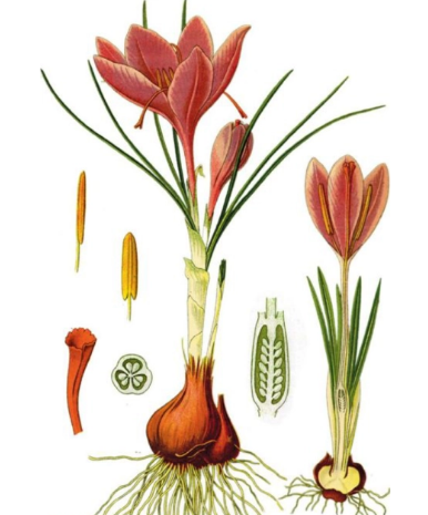 本草纲目中记载对番红花的功效与作用是心忧郁积、气闷不散,活血。亦治惊悸。现代医学证明番红花的功效与作用其干燥柱头味甘性平,能活血化瘀,散郁开结,止痛。用于治疗忧思郁结,胸膈痞闷,吐血,伤寒发狂,惊怖恍惚,妇女经闭,血滞月经不调,产后恶露不尽,瘀血作痛,麻疹,跌打损伤等。国外用作镇静、驱风剂。活血化瘀,凉血解毒,解郁安神。温毒发斑、忧郁痞闷、惊悸发狂。