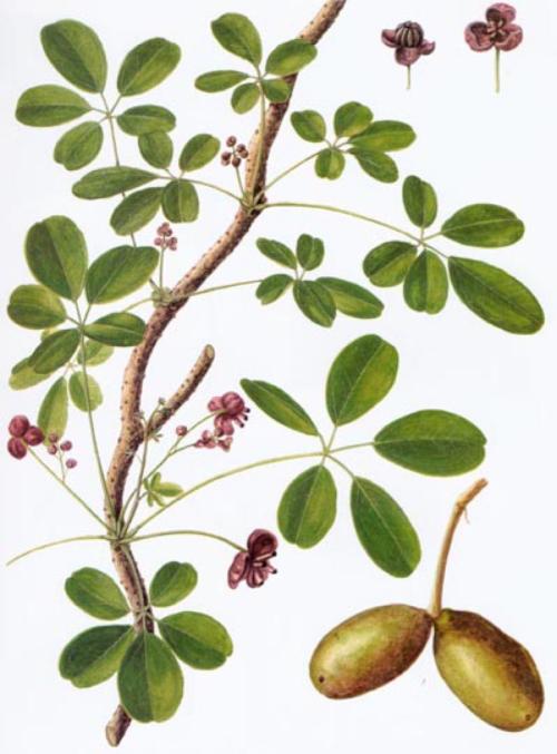 预知子采自木通的近成熟果实,是一种寒性的药物,古籍本草纲目当中的预知子是一味能利尿杀虫活血止痛的中药材,预知子释名圣知子、圣先子、盍合子、仙沼子。预知子从性能上论其气味在于子和仁,都是偏苦而性寒之物,但都无毒。预知子的功效与作用主治1、精神病(心气不足,精神恍惚,语言错妄,忪悸烦郁,忧悉惨戚,喜怒多风扇,健忘少睡,夜多异梦,狂不知人)。用预知子(去皮)、白茯苓、枸杞子石草蒲、茯神、柏子仁、人胡、地骨皮、远志、山药、黄精(蒸熟)、朱砂(水飞),等分为末,加炼蜜和成丸子,发芡子大。每嚼服一丸,人参汤送人。2、疠风(眉落、声变)。用预知子、雄璜各二两,共研为末。另以乳香三两,同水一斗,煮成五升后,加入药末熬成膏,收存瓶。饭前一匙,温酒调下。