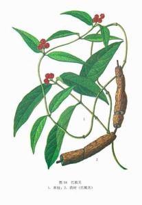 本草纲目中草药大全巴戟天释名不凋草(《日华》)、三蔓草。巴戟天气味辛、甘,微温,无毒。大明曰︰苦。巴戟天的功效与作用主治大风邪气,阴痿不起,强筋骨,安五脏,补中增志益气(《本经》)。疗头面游风,小腹及阴中觉相引痛,补五劳,益精,利男子(《别录》)。治疗男子夜间梦鬼交精泄,强阴下气,治风癞(甄权)。治一切风,疗水胀(《日华》)。治香港脚,去风疾,补血海(时珍,出《仙经》)。时珍曰︰名义殊不可晓。【集解】《别录》曰︰巴戟天生巴郡及下邳山谷。二月、八月采根,阴干。弘景曰︰今亦用建平、宜都者,根状如牡丹而细,外赤内黑,用之打去心。恭曰︰其苗俗名三蔓草。叶似茗,经冬不枯。根如连珠,宿根青色,嫩根白紫,用之亦同,以连珠多肉浓者为胜为上品。大明曰︰紫色如小念珠,有小孔子,坚硬难捣。宗曰︰巴戟天本有心,干缩时偶自落,或抽去,故中心或空,非自有小孔也。今人欲要中间紫色,则多伪以大豆汁沃之,不可不察。颂曰︰今江淮、河东州郡亦有,但不及蜀川者佳。多生竹林内。内地生者,叶似麦门冬而浓大,至秋结实。今方家多以紫色为良。蜀人云︰都无紫色者。采时或用黑豆同煮,欲其色紫,殊失气味,尤宜辨之。又有一种山根,正似巴戟,但色白。土人采得,以醋水煮之,乃以杂巴戟,莫能辨也。但击破视之,中紫而鲜洁者,伪也;其中虽紫,又有微白,糁有粉色,而理小暗者,真也。真巴戟嫩时亦白,干时亦煮治使紫,力劣弱耳。巴戟天之根的功效与作用【修治】曰︰凡使须用枸杞子汤浸一宿,待稍软漉出,再酒浸一伏时,漉出,同菊花熬焦黄,去菊花,以布拭干用。时珍曰︰今法︰惟以酒浸一宿,锉焙入药。若急用,只以温水浸软去心也。之才曰︰覆盆子为之使,恶雷丸、丹参、朝生。【发明】好古曰︰巴戟天,肾经血分药也。权曰︰病患虚损,加而用之。宗曰︰有人嗜酒,日须五、七杯,后患香港脚甚危。或教以巴戟半两(糯米同炒,米微转色,去米不用),大黄一两(锉,炒)。同为末,熟蜜丸。温水服五、七十丸。仍禁酒,遂愈。【附录】巴棘《别录》曰︰味苦,有毒。主恶疥疮出虫。生高地,叶白有刺,根连数。