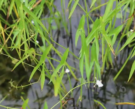 水生草本植物,叶片浮于水面,呈箭形或心形,夏季开白色小花。