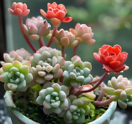 以下是8种适合新手养护的无毒多肉植物,它们不仅安全(适合有小孩或宠物的家庭),而且耐旱好养,颜值在线:1. 胧月(Graptopetalum para...