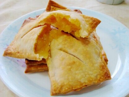 自己在家自制苹果酱,除了可以用来做抹面包的果酱之外,自制苹果派也是一道香脆可口的健康食谱甜点。今天继续分享自制苹果派的步骤。非常的简单,到超市买回来“印度飞饼”做就可以了,如果买不到“印度飞饼”也没有关系,用一些面粉加少许食用油(或牛油)和面成油面,另外用食用油加水和面,将油面包在另外的面团里,折叠多次擀薄即可成酥皮了。法式苹果派的做法步骤1.买回来现成的法式苹果派酥皮。2.将买回来的酥皮解冻之后摊平。3.用滚刀将酥皮切块(大小按自己喜欢来切)。4.取一块酥皮将自己苹果酱放上。5.将另一块酥皮覆盖在上面。6.将两块酥皮四周粘和好。7.放入烤箱200°上下火烤25分钟。8.熄火焗几分钟即可。9.这款“酥脆法式苹果派”做法简单,口感酥脆香甜,很适合做下午茶的甜点。参加派对也很受喜欢哦。法式苹果派的做法小贴士做这款法式苹果派很简单,首先将苹果切丁加糖煮成苹果酱,然后用酥皮包起放入烤箱烤至酥皮香脆熟了即可。