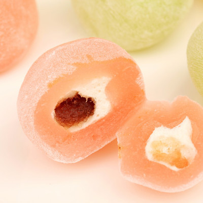 雪媚娘的做法说明要问雪媚娘怎么做好吃?秘诀就是淡奶油的打发对温度要求特别高,温度越高雪媚娘的做法打发的时间就越长,且很容易打成失败的油水分离,不同淡奶油打发的温度对雪媚娘的做法要求也是不一样,储藏也不一样,乳脂含量越高的奶油就越是不容易打发恰到好处。由于对储藏的温度也不一样,含乳脂高的淡奶油由于储存时间非常短,建议放冰箱冷藏的时候尽量放在冰箱门的位置,如果时间放长了,储藏温度低了,淡奶油就会因低温凝固成块,打发的时候时间短,进入的空气少,奶油就涨发不了多少,夏天奶油裱花,最好分两次打发,第一次打发能够抹面的奶油,面抹好后放入冰箱冷藏,再继续打发装饰奶油,打好的奶油马上放入冰箱,放室温的话温度升高后奶油一会就出水化掉。好多淡奶油都是大包装的,打开后不能一次全部用完,液态淡奶油夏天开封的时候如果一次用不完,不要从别人给你的口外打开,在淡奶油盒子的顶部打一个角,用剪刀剪一个非常小的口子,将淡奶油挤出来,挤够用量的奶油后排出里面的空气,没有奶油的部份压扁,将封口外向内对折卷起来,卷到不能卷的时候用餐纸包上,用夹子夹紧放入冰箱冷藏,这样放的时间会长。夏天我喜欢用两种奶油,一种含量乳脂高的,另一种少的,可以冻的淡奶油,不同奶油用处不一样。象做雪媚娘这样的点心,雪媚娘的家常做法做好后要放冰箱冷藏,用含乳脂高容易发泡影响口感,所以我用了森派淡奶油,含乳脂17%,用不完的可以冻冰箱,用多少切多少下来,剩下的用干净袋子包上,冻入冰箱。用雪媚娘的家常做法做了15个雪媚娘,打发了380克森派奶油,加了3克香草精油。将切下来的奶油再切成薄片放在室温下一会就解冻成半液态状,然后用打蛋器低速慢慢打,让空气慢慢进入到奶油里去,奶油才细滑。一直用低速慢慢打差不多10分钟左右(不同打蛋器的速度和奶油的温度用的时间不一样的)感觉阻力越来越大,提起打蛋头,奶油被一团提起来,奶油温度保持在15度左右,如果温度再高打发的时间就会越长,打出的状态越差,奶油的温度非常关健,根据奶油的多少,一般在10度以下,打好的奶油马上放入冰箱冷藏。这个状态可以用来做花,蛋糕。抹面。戚风蛋糕分成蛋糕片。用一圆模取出一些圆蛋糕片。没有小圆模也可切成小正方形。猕猴桃,芒果去皮,切成小丁,也可用其它水果或者果酱,最好用当季新鲜水果味道好些。取一张雪媚娘的皮,用羊毛刷刷去表面的干粉,粉扫完后,将四周往外拉,将面皮拉大,然后均匀铺在模具里。用一个一次性裱袋装入一个圆口裱花嘴,装入淡奶油,如果没有袋子和花嘴,找一个干净塑料袋子,剪一个小口装入奶油再挤也一样。奶油量根据自己喜欢。加入水果轻压进奶油里,水果的量也是根据自己喜欢增减。最后放上蛋糕片。先将四个角拉拢捏紧。然后再将四条边捏在一起。最后将四个角拉回去和边捏在一起。包好后先盖上包装纸,再将纸托轻轻放上去,切不可重压,包装纸的角和纸托的角相对。然后轻轻翻过来,漂亮好吃的雪媚娘就做好了。今年不想再做冰皮月饼了,继续做雪媚娘,味道好,而且方便,送人也漂亮。雪媚娘的做法用料雪媚娘的做法主料:糯米粉100克, 纯牛奶180克雪媚娘的做法辅料:粟粉30克,白糖20克,白油30克,红豆沙馅适量带雪媚娘皮雪媚娘的做法步骤1.备食材2.准备手粉:另取适量的放在铺有锡纸的烤盘里,放入烤箱烘烤上下120度烤10分钟左右,取出备用糯米粉、粟粉混合过筛,加入白糖搅均匀3.再加入纯牛奶,均匀搅拌成粉浆4.将粉浆过筛一遍5.放入锅里大火蒸15~20分钟至熟6.取出稍凉后,柔成光滑的面团,放入冷藏10分钟7.取出冷藏好的面团,将面团分成15克的小面团,粘上烤熟的手粉8.把小面团压平,压成薄面皮,包入馅料即可9.包好后即可食用,也可放入冰箱冷藏,口感更好