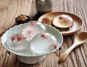有一种看上去晶莹剔透的小吃,它的样子看起来既像果冻,QQ的又像麻吉,据说这小吃入口即化,常温静置30分钟不吃竟然就会化成一滩水,非常神奇!这种小吃就是十分流行的一款日本传统小吃——水信玄饼。相传在日本,传统的水信玄饼只有6~9月才有贩售,水信玄饼制作材料中的水是来自日本赤石山脉的水,有着天然甜味,且必须在30分钟之内吃完,因为超过时间将会自动融化了。樱花水信玄饼怎么做好吃?做法其实很简单,就是用糯米粉做成软年糕后沾上黄豆粉吃。最近一家日本点心店用琼脂代替糯米粉,制作出了像水晶球一样透明的“水信玄饼”,自6月1日开卖以来,人气爆棚。其实网购一套球形冰格模具,用琼脂、白凉粉、冰粉甚至是吉利丁、果冻粉都可以做成水信玄饼。水信玄饼的做法主料:球形冰格,白凉粉4-5g,水200g 水信玄饼的做法辅料:白糖适量水信玄饼的做法步骤1. 锅中加水,按照喜好加适量白糖,煮开后转中小火,保持微微沸腾。水信玄饼的做法图解22. 加入白凉粉。樱花水信玄饼怎么做好吃?就是必须要加白凉粉。除了白凉粉,你还可以用琼脂、冰粉、吉利丁、果冻粉。要是这些你都买不到,好吧,我给你大招——用QQ糖!3. 搅拌到白凉粉融化,小火继续加热两三分钟。4. 把锅中的水倒进冰格里,装满。球形冰格是网购的。我的冰格注入口太小,用了一根竹签做引流,才把水灌了进去。要是没有球形冰格,好吧,再给你个大招——冰箱的冰格总有吧?要是冰箱冰格也没有,好吧,终极大招——果冻壳!5. 室温下等待水信玄饼凝固即可。如果用琼脂、QQ糖、果冻粉或吉利丁制作,需要冷藏。6. 冷却的过程可以准备蘸料。吃过糖不甩吗?水信玄饼的蘸料和糖不甩差不多,红糖加少量水熬成糖浆,洒上碎花生、黄豆粉就可以吃啦。