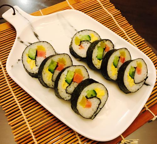 寿司是日本传来的美食,国内也有许多家长喜欢这些好看又好吃的寿司,用来当作讨小孩喜欢的食物再合适不过了,美味的寿司的做法和材料,赶快来尝尝鲜吧。寿司的做法和材料食材黄瓜 1根,胡萝卜 1根,肉松 适量,火腿 1根,沙拉 适量,寿司醋 2汤勺,黑胡椒 适量,大米饭 1小碗,白糖 适量,盐 适量,烤紫菜 2张寿司的做法和材料1黄瓜、胡萝卜和火腿肠分别切成粗细均匀的条状,胡萝卜条在热水中煮2分钟断生后捞出晾凉备用;