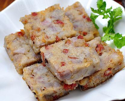 芋头是许多人喜欢的食物,其粉糯易消化的特点尤其适合孩子和老人食用,因此芋头也是用来给孩子制作辅食的常用食材。芋头糕的做法家常做法多种多样,今天上海育盟养生网要介绍给大家的是一道广式芋头糕。在广东的茶楼里,芋头糕在各式茶点中可是有着不可取代的地位哦。芋头糕的做法家常做法用料香芋320克,粘米粉150克,温水(拌粉浆用)150克,火腿2条,香菇10克,虾米20克,萝卜干10克,砂糖20克,食盐4克,鸡粉2克,水(煮芋头用)适量,食用油适量,熟花生碎适量,熟白芝麻适量芋头糕的做法家常做法步骤1、芋头削皮后取320克切小丁,香菇、虾米泡发后切小丁,火腿、萝卜干切小丁。150克的粘米粉调入150克的热水,调均匀无颗粒为止。