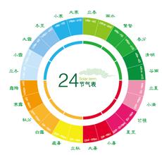 二十四节气最初时候大约是起源黄河流域。早在春秋时代就兴起了,就定出仲春、仲夏、仲秋以及仲冬这四个节气。以后节气得到陆续的改进,到秦汉年间,二十四节气已经被基本完善。公元前104年,由邓平等编写的《太初历》,正式地把二十四个节气修订在历法当中,使二十四节气的天文位置得到了明确。 太阳从二十四节气中的黄经零度算起,沿着黄经每次运行15度,其所经历的日子就称为“一个节气”。就这样每年运行,转一个360度,总共经过二十四个节气,每月经历2个。其中,每月第一个节气为“节气”,即:立春、惊蛰、清明、立夏、芒种、小暑、立秋、白露、寒露、立冬、大雪和小寒等12个节气;每月的第二个节气为“中气”,即:雨水、春分、谷雨、小满、夏至、大暑、处暑、秋分、霜降、小雪、冬至和大寒等12个节气。“节气” 和“中气”交替出现,各历时15天,现在人们已经把“节气”和“中气”统称为“节气”。 二十四节气反映了太阳的周年视运动,所以节气在现行的公历中日期基本固定,上半年在6日、21日,下半年在8日、23日,前后不差1~2天。