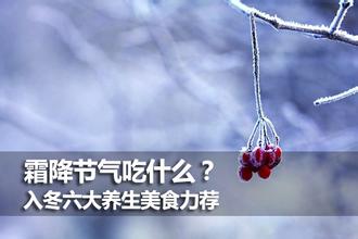 霜降节气吃什么?——吃生津润燥、宣肺止咳的食物秋末霜降气候干燥(燥容易伤津),容易犯咳嗽,从养生来说,适合多吃些生津润燥、宣肺止咳的食物,如蜂蜜、百合、萝卜、银耳、芝麻、苹果、白果、柿子等。霜降节气吃什么?——吃柿子霜降吃柿子,这是很多地方都有的习俗,但不同地方对霜降吃柿子的说法又不太一样。泉州老人认为:霜降吃丁柿,不会流鼻涕。另外一些地方则要吃红柿,认为这样能补筋骨、御寒。还有些地方认为:霜降这天要吃杮子,不然整个冬天嘴唇都会裂开。霜降节气吃什么?——吃栗子