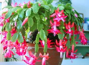 蟹爪兰别名蟹爪莲、仙指花、蟹兰、圣诞仙人掌、接骨兰,为仙人掌科蟹爪兰属附生性小灌木。叶状茎扁平多节,肥厚,卵圆形,鲜绿色,先端截形,边缘具粗锯齿。花蕊着生于茎的顶端,花被开张反卷,花色有淡紫、黄、红、纯白、粉红、橙和双色等。蟹爪兰原产地为巴西,喜温暖湿润环境,宜半阴环境下养护,忌强光直射,比较耐早,怕水湿,不耐寒,对土壤要求较高,需腐殖质丰富、疏松,排水良好的沙质性壤土。盆栽蟹爪兰应该注意的问题盆栽蟹爪兰可以将腐叶土、园土、粗沙土等量混合配置,外加少量骨粉作为基肥。在生长期间不宜过多浇水,保持盆土湿润即可,注意千万不能盆内积水,以免造成烂根。从春季至人夏,每隔半个月左右施I次以氮肥为主的稀薄肥料,入夏之后应暂停施肥。从立秋至开花,肥水应及时供应,一般每10天左右施1次复合花有机肥料,孕蕾开花前增施1^-2次磷肥和钾肥,这样既有利于花芽的形成,又有利于花色鲜艳。蟹爪兰喜半阴环境,春季保证光照,注意通风透气。人夏后避免烈日直接暴晒。蟹爪兰怎样安全度过夏天夏季气温高,蟹爪兰生长处于休眠停滞状态,此时应控制浇水并且停止施肥,每天向植株喷水2-3次,以增加空气湿度,降低气温,就能安全度夏。蟹爪兰秋冬攀带蓄释管理人秋以后可放在阳光较多的地方接受光照,以促进花芽分化。蟹爪兰不耐寒,冬季保证光照,室温保持在15℃上下为宜.孕蕾期要经常向植株周围喷水,注意避开花蕾。开花期温度维持在12℃左右能延长花期。花后出现的短暂休眠期期间应减少浇水并停止施肥,将残花全部剪除。待茎节上萌发新芽后再转人正常水肥管理。一般生长4-5年的蟹爪兰茎节过长、细弱,可于早春生长前留基部3, 4节,其余剪去,以促使萌发新茎节。每隔1-2年于春季花谢之后换一次盆。怎样使蟹爪兰提前开花蟹爪兰为短日照植物,在短日照条件下,2-3个月即可开花.如想让它提前开花,可用不透光的黑色塑料薄膜或黑布罩、纸箱对植株进行遮光处理,每天接受8-9小时光照,其余时间罩上薄膜罩或黑布,每天浇一次水,保持盆土稍湿润,这样大约2-3个月就可以开花了。